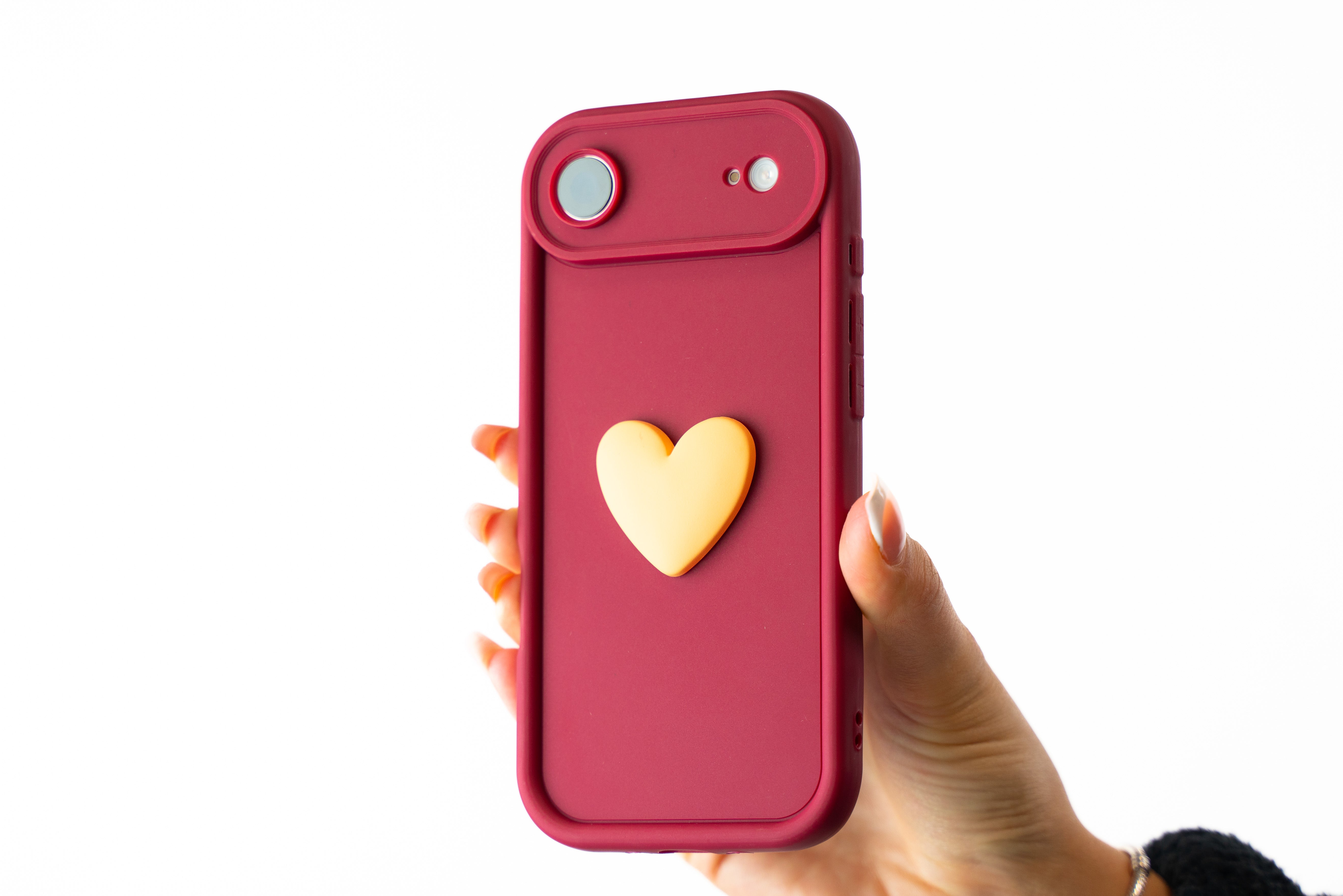 Dopřejte svému iPhone 17 Air jedinečný vzhled s elegantním silikonovým krytem s 3D srdíčkem. Tento kryt v moderní vínové barvě je navržen tak, aby nejen spolehlivě chránil, ale i vizuálně zaujal. Roztomilé 3D srdíčko na zadní straně je příjemné na dotek a dodává telefonu hravý a osobitý charakter.
