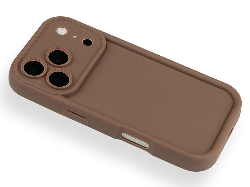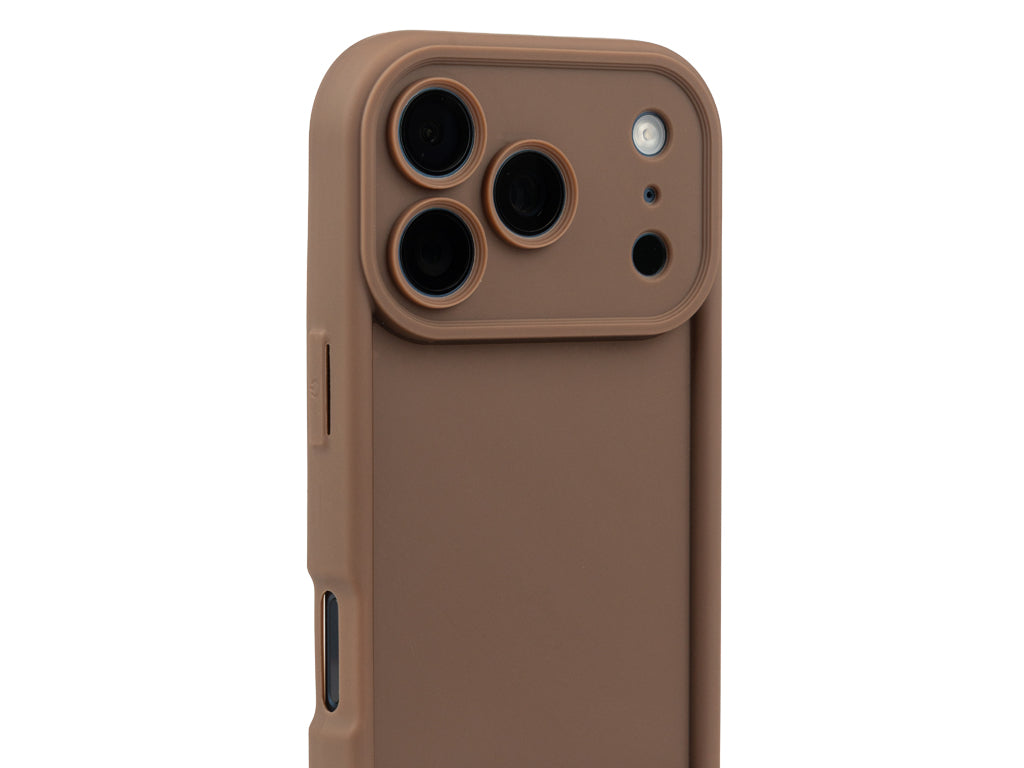 Hnědý silikonový kryt se zvýšenou ochranou hran pro iPhone 17 Pro