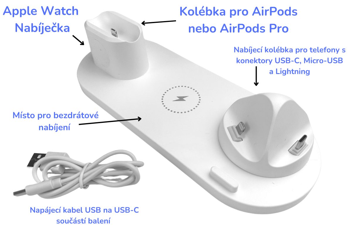 Součástí balení : 6v1 rychlonabíjecí stanice 15V + Nabíjecí kabel USB na USB-C