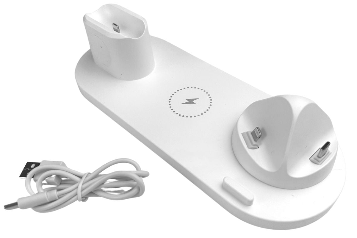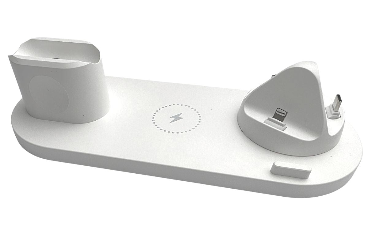 15W rychlonabíječka pro nabíjení až 6 zařízení najednou. Nabíječka disponuje kolébkou pro Apple Watch, Airpods, Qi bezdrátovým nabíjecím místem, otočnou nabíjecí kolébkou s konektory USB-C, Micro USB a Lightning a 2 USB konektory pro nabíjení dalších zařízení.