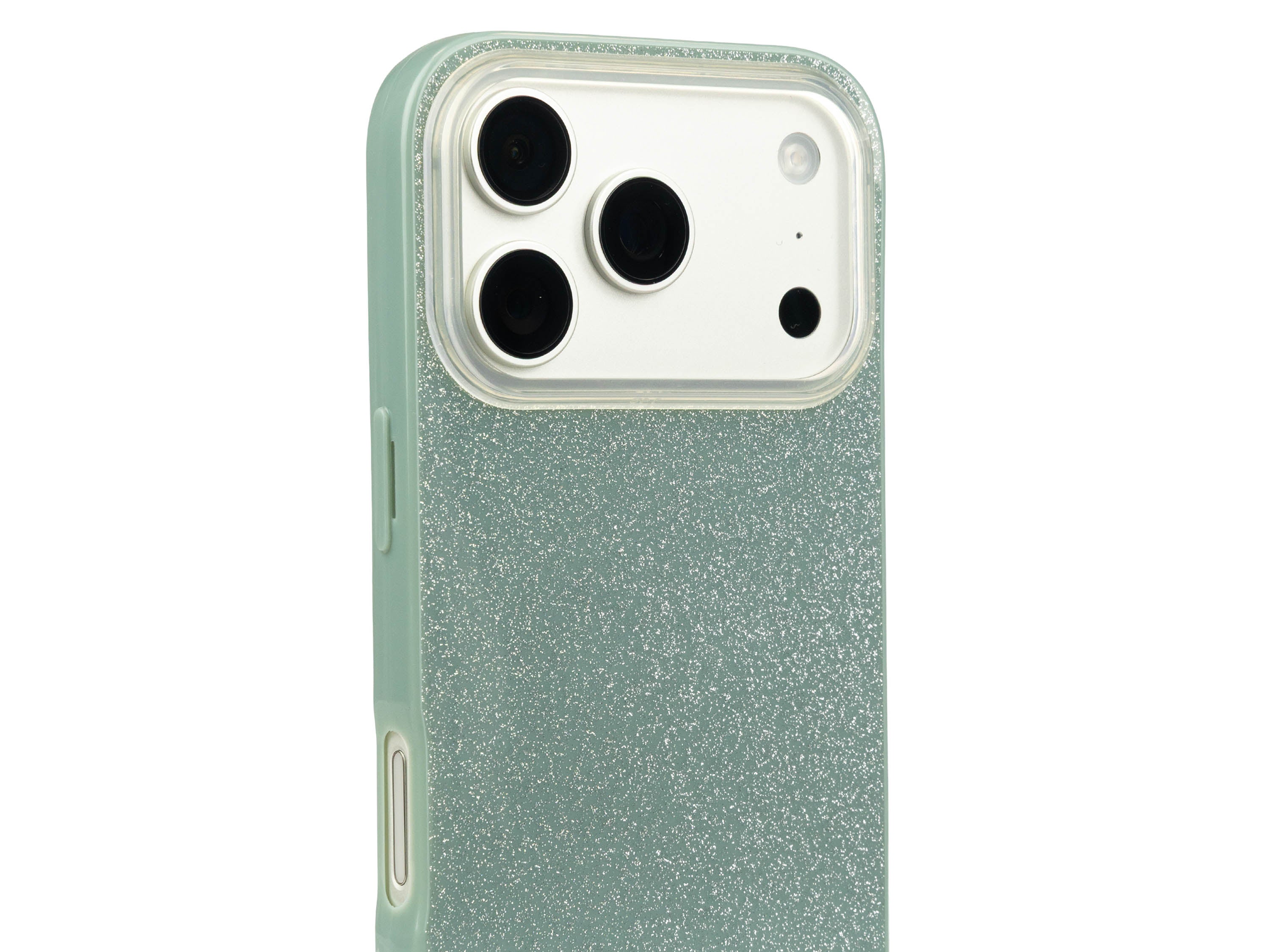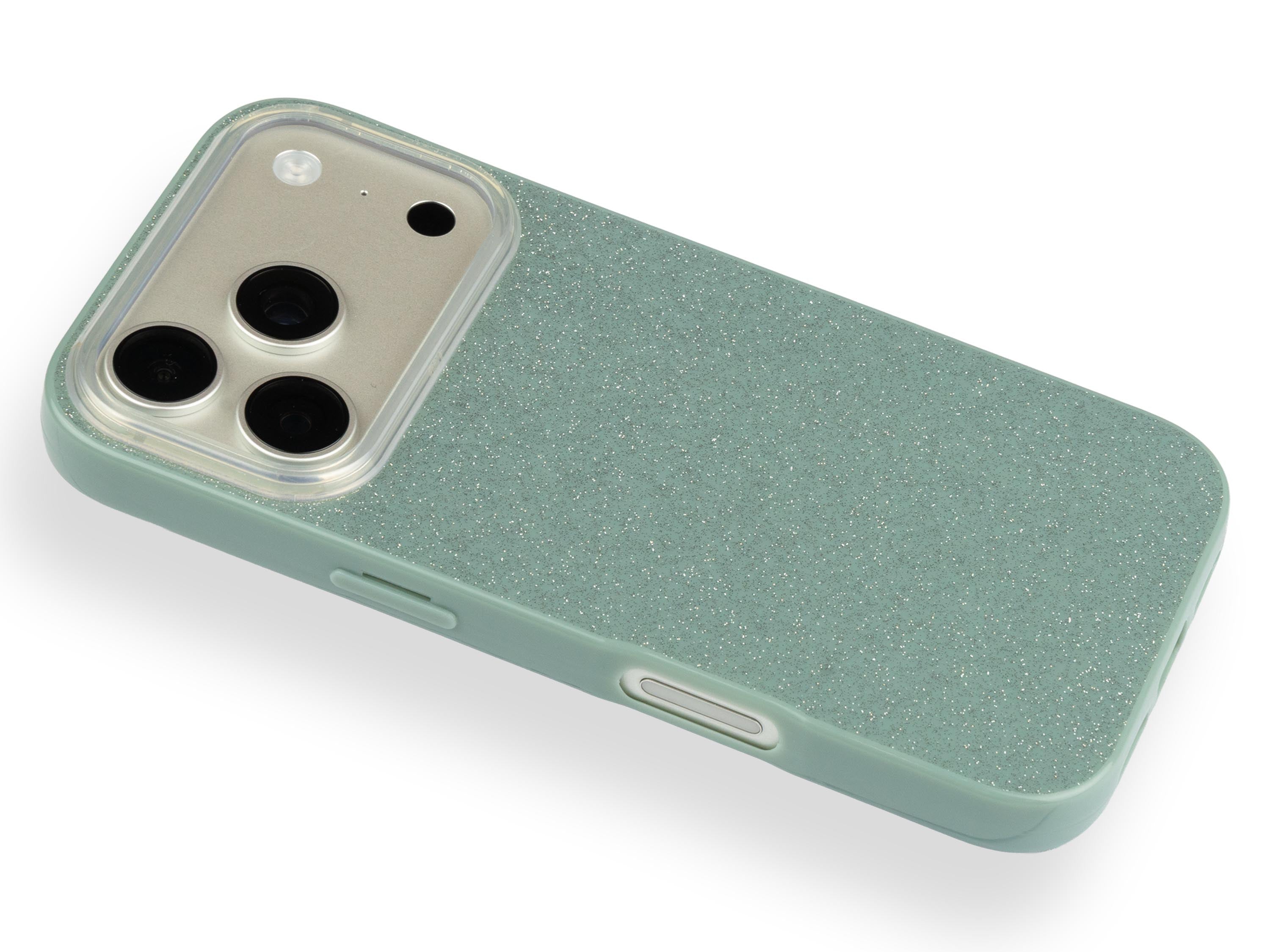 Třpytivý tlumený zelený kryt na iPhone 17 Pro Max